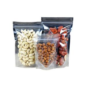 1 Side Metallic Silver/ 1 Side Transparent Stand up Pouch- Zipper