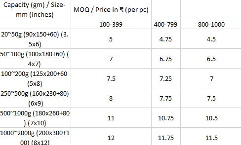 50g, 100g, 200g, 500g, 1000g (1kg), 2000g (2kg) |