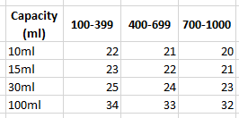 10ml, 15ml, 30ml, 100ml