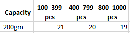 100pcs, 200pcs, 300pcs, 400pcs, 500pcs, 600pcs, 700pcs, 800pcs, 900pcs, 1000pcs |