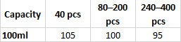 40pcs, 80pcs, 120pcs, 160pcs, 200pcs, 240pcs, 280pcs, 320pcs, 360pcs, 400pcs |