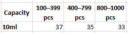 100pcs, 200pcs, 300pcs, 400pcs, 500pcs, 600pcs, 700pcs, 800pcs, 900pcs, 1000pcs |