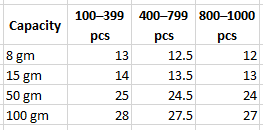 100pcs, 200pcs, 300pcs, 400pcs, 500pcs, 600pcs, 700pcs, 800pcs, 900pcs, 1000pcs |