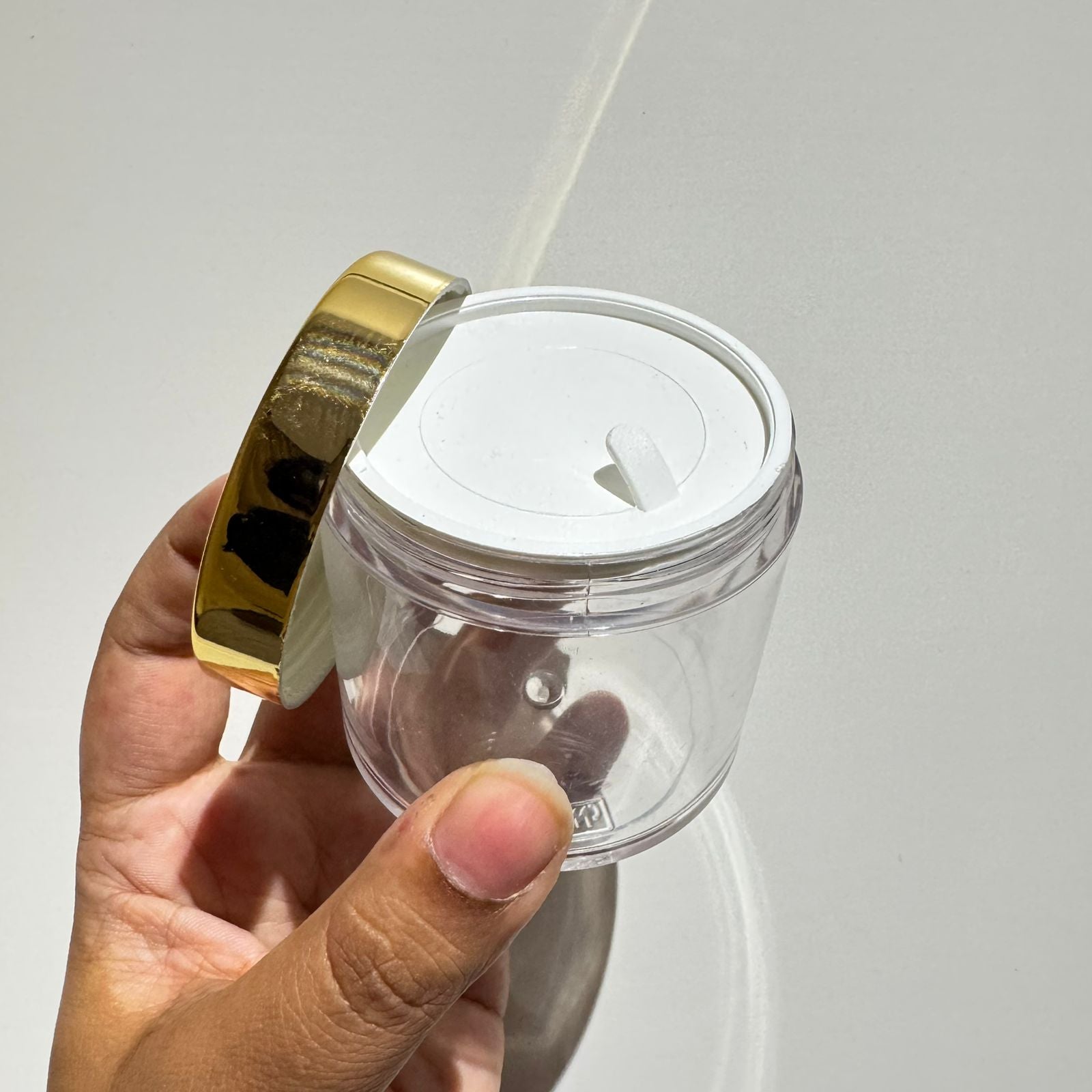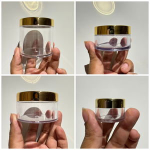 Acrylic San Jars with Golden and white inner cap fits for lip balms and body butter and for other skin care products, small and convenient to carry cosmetic products.