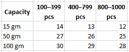5g, 15g, 50g, 100g |