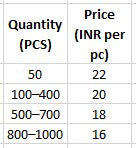50pcs, 100pcs, 200pcs, 300pcs, 400pcs, 500pcs, 600pcs, 700pcs, 800pcs, 900pcs, 1000pcs |
