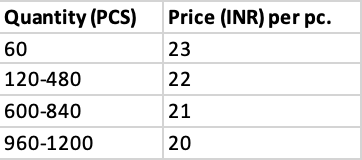 60pcs, 120pcs, 240pcs, 360pcs, 480pcs, 600pcs, 720pcs, 840pcs, 960pcs, 1080pcs, 1200pcs |