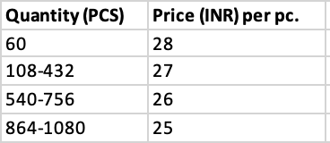 60pcs, 108pcs, 216pcs, 324pcs, 432pcs, 540pcs, 648pcs, 756pcs, 864pcs, 972pcs, 1080pcs |