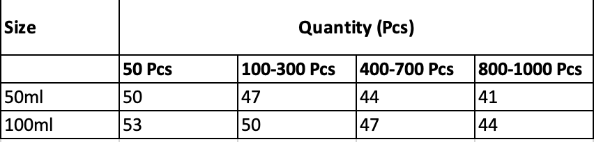 Size: 50ml: 8 x 5 cm | 100ml: 9 x 5.5 cm
