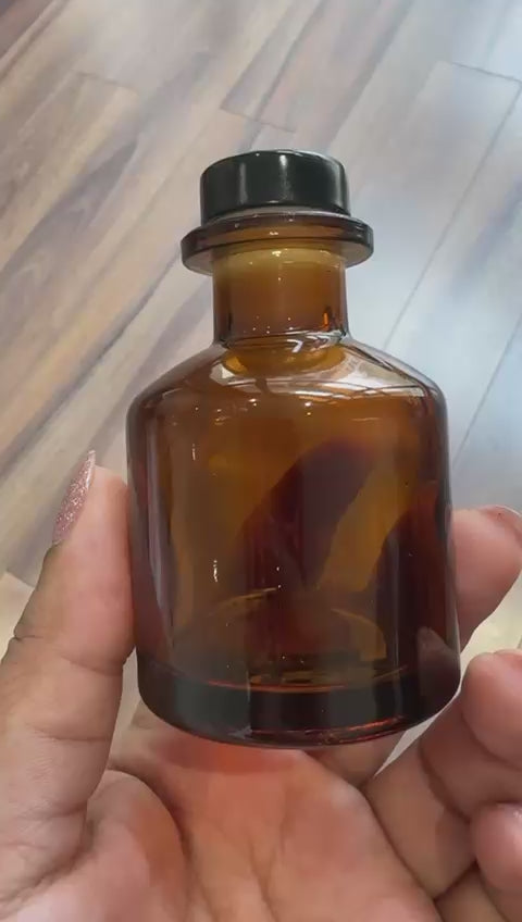 Premium Amber Glass Diffuser Bottle (50ml & 100ml) with Black Cap & Stopper