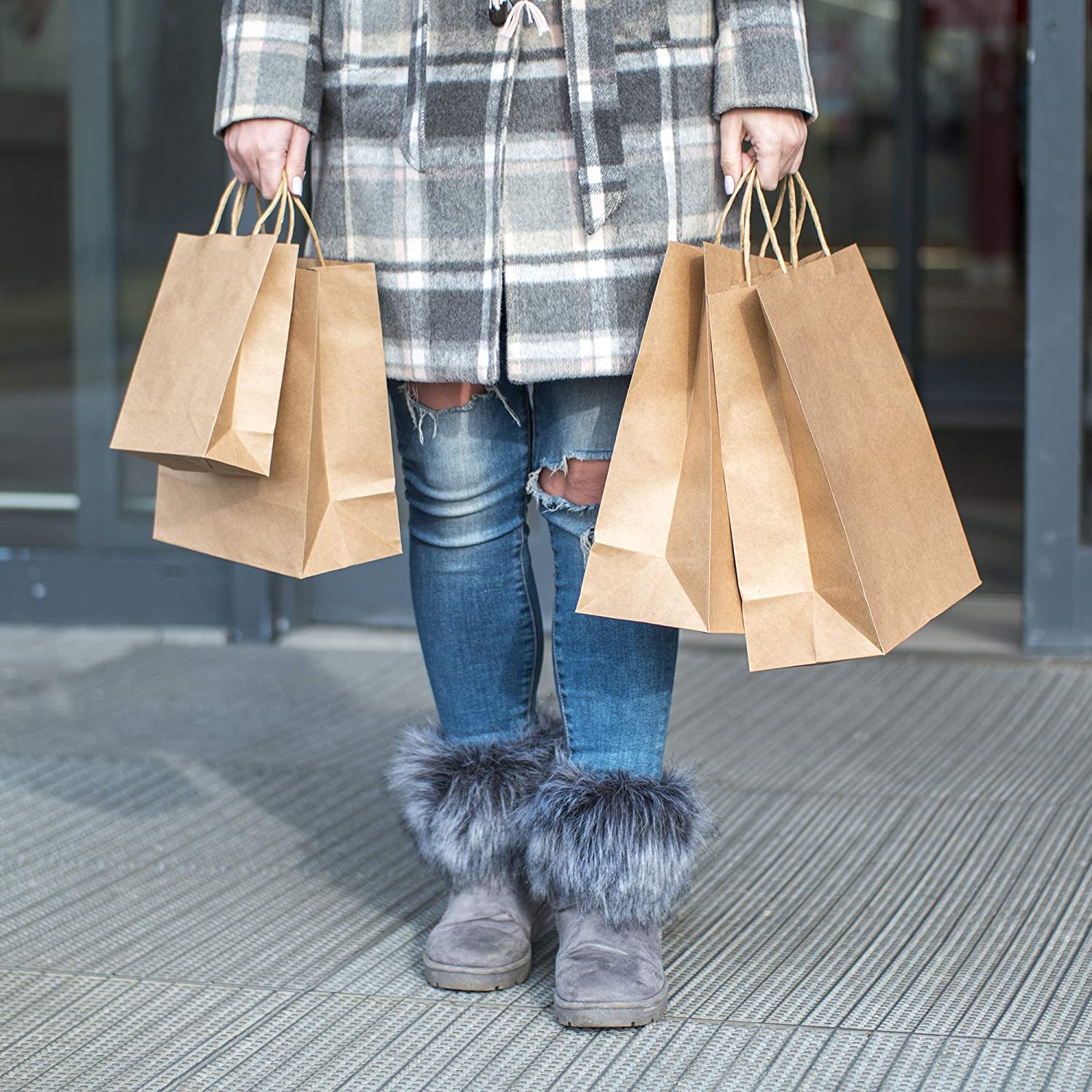 The kraft paper bags are Reusable, Recyclable, Bio-Degradable and Compostable. Use our bulk paper bags with handle, reuse them as many times as you like and then help reduce waste by recycling them.