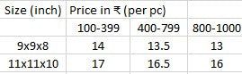 7.5x5x6.25(inch), 9x6x8 (inch), 11.5x7.5x9.5 (inch) |