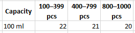 100pcs, 200pcs, 300pcs, 400pcs, 500pcs, 600pcs, 700pcs, 800pcs, 900pcs, 1000pcs |