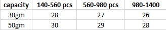 140pcs, 280pcs, 420pcs, 560pcs, 700pcs, 840pcs, 980pcs, 1120pcs, 1260pcs, 1400pcs |