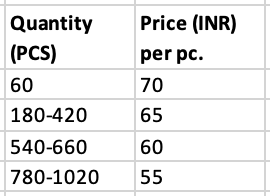 60pcs, 180pcs, 300pcs, 420pcs, 540ps, 660pcs, 780pcs, 900pcs, 1020pcs |