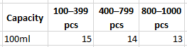 100pcs, 200pcs, 300pcs, 400pcs, 500pcs, 600pcs, 700pcs, 800pcs, 900pcs, 1000pcs |
