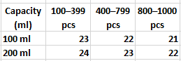 100pcs, 200pcs, 300pcs, 400pcs, 500pcs, 600pcs, 700pcs, 800pcs, 900pcs, 1000pcs |