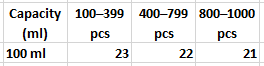 100pcs, 200pcs, 300pcs, 400pcs, 500pcs, 600pcs, 700pcs, 800pcs, 900pcs, 1000pcs |