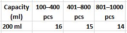 100pcs, 200pcs, 300pcs, 400pcs, 500pcs, 600pcs, 700pcs, 800pcs, 900pcs, 1000pcs |