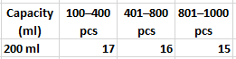 100pcs, 200pcs, 300pcs, 400pcs, 500pcs, 600pcs, 700pcs, 800pcs, 900pcs, 1000pcs |
