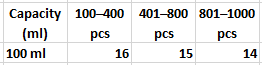 100pcs, 200pcs, 300pcs, 400pcs, 500pcs, 600pcs, 700pcs, 800pcs, 900pcs, 1000pcs |