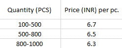 100pcs, 200pcs, 300pcs, 400pcs, 500pcs, 600pcs, 700pcs, 800pcs, 900pcs, 1000pcs |