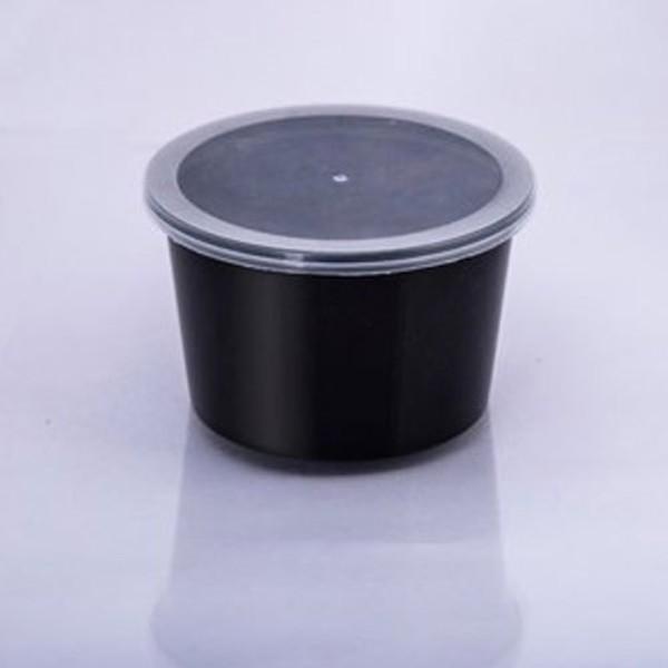 Disposable Plastic Food Container + Lid - 500ml (Round) White/ Black/ Transparent