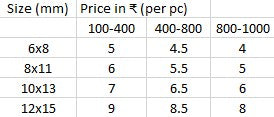 6x8, 8x11, 10x13, 12x15 |