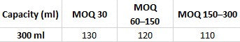 30pc, 60pc, 90pc, 120pc, 150pc, 200pc, 250pc, 300pc |