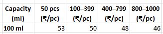 50pcs, 100pcs, 200pcs, 300pcs, 400pcs, 500pcs, 600pcs, 700pcs, 800pcs, 900pcs, 1000pcs |