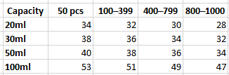 50pcs / 20ml / Amber | Black - Rs. 1,700.00 50pcs / 20ml / Amber | White - Rs. 1,700.00 50pcs / 20ml / Clear | Black - Rs. 1,700.00 50pcs / 20ml / Clear | White - Rs. 1,700.00 50pcs / 30ml / Amber | Black - Rs. 1,900.00 50pcs / 30ml / Amber | White - Rs. 1,900.00 50pcs / 30ml / Clear | Black - Rs. 1,900.00 50pcs / 30ml / Clear | White - Rs. 1,900.00 50pcs / 50ml / Amber | Black - Rs. 2,000.00 50pcs / 50ml / Amber | White - Rs. 2,000.00 50pcs / 50ml / Clear | Black - Rs. 2,000.00 50pcs / 50ml / Clear | White - Rs. 2,000.00 50pcs / 100ml / Amber | Black - Rs. 2,650.00 50pcs / 100ml / Amber | White - Rs. 2,650.00 50pcs / 100ml / Clear | Black - Rs. 2,650.00 50pcs / 100ml / Clear | White - Rs. 2,650.00 100pcs / 20ml / Amber | Black - Rs. 3,200.00 100pcs / 20ml / Amber | White - Rs. 3,200.00 100pcs / 20ml / Clear | Black - Rs. 3,200.00 100pcs / 20ml / Clear | White - Rs. 3,200.00 100pcs / 30ml / Amber | Black - Rs. 3,600.00 100pcs / 30ml / Amber | White - Rs. 3,600.00 100pcs / 30ml / Clear | Black - Rs. 3,600.00 100pcs / 30ml / Clear | White - Rs. 3,600.00 100pcs / 50ml / Amber | Black - Rs. 3,800.00 100pcs / 50ml / Amber | White - Rs. 3,800.00 100pcs / 50ml / Clear | Black - Rs. 3,800.00 100pcs / 50ml / Clear | White - Rs. 3,800.00 100pcs / 100ml / Amber | Black - Rs. 5,100.00 100pcs / 100ml / Amber | White - Rs. 5,100.00 100pcs / 100ml / Clear | Black - Rs. 5,100.00 100pcs / 100ml / Clear | White - Rs. 5,100.00 200pcs / 20ml / Amber | Black - Rs. 6,400.00 200pcs / 20ml / Amber | White - Rs. 6,400.00 200pcs / 20ml / Clear | Black - Rs. 6,400.00 200pcs / 20ml / Clear | White - Rs. 6,400.00 200pcs / 30ml / Amber | Black - Rs. 7,200.00 200pcs / 30ml / Amber | White - Rs. 7,200.00 200pcs / 30ml / Clear | Black - Rs. 7,200.00 200pcs / 30ml / Clear | White - Rs. 7,200.00 200pcs / 50ml / Amber | Black - Rs. 7,600.00 200pcs / 50ml / Amber | White - Rs. 7,600.00 200pcs / 50ml / Clear | Black - Rs. 7,600.00 200pcs / 50ml / Clear | White - Rs. 7,600.00 200pcs / 100ml / Amber | Black - Rs. 10,200.00 200pcs / 100ml / Amber | White - Rs. 10,200.00 200pcs / 100ml / Clear | Black - Rs. 10,200.00 200pcs / 100ml / Clear | White - Rs. 10,200.00 300pcs / 20ml / Amber | Black - Rs. 9,600.00 300pcs / 20ml / Amber | White - Rs. 9,600.00 300pcs / 20ml / Clear | Black - Rs. 9,600.00 300pcs / 20ml / Clear | White - Rs. 9,600.00 300pcs / 30ml / Amber | Black - Rs. 10,200.00 300pcs / 30ml / Amber | White - Rs. 10,200.00 300pcs / 30ml / Clear | Black - Rs. 10,200.00 300pcs / 30ml / Clear | White - Rs. 10,200.00 300pcs / 50ml / Amber | Black - Rs. 11,400.00 300pcs / 50ml / Amber | White - Rs. 11,400.00 300pcs / 50ml / Clear | Black - Rs. 11,400.00 300pcs / 50ml / Clear | White - Rs. 11,400.00 300pcs / 100ml / Amber | Black - Rs. 15,300.00 300pcs / 100ml / Amber | White - Rs. 15,300.00 300pcs / 100ml / Clear | Black - Rs. 15,300.00 300pcs / 100ml / Clear | White - Rs. 15,300.00 400pcs / 20ml / Amber | Black - Rs. 12,000.00 400pcs / 20ml / Amber | White - Rs. 12,000.00 400pcs / 20ml / Clear | Black - Rs. 12,000.00 400pcs / 20ml / Clear | White - Rs. 12,000.00 400pcs / 30ml / Amber | Black - Rs. 13,600.00 400pcs / 30ml / Amber | White - Rs. 13,600.00 400pcs / 30ml / Clear | Black - Rs. 13,600.00 400pcs / 30ml / Clear | White - Rs. 13,600.00 400pcs / 50ml / Amber | Black - Rs. 14,400.00 400pcs / 50ml / Amber | White - Rs. 14,400.00 400pcs / 50ml / Clear | Black - Rs. 14,400.00 400pcs / 50ml / Clear | White - Rs. 14,400.00 400pcs / 100ml / Amber | Black - Rs. 19,600.00 400pcs / 100ml / Amber | White - Rs. 19,600.00 400pcs / 100ml / Clear | Black - Rs. 19,600.00 400pcs / 100ml / Clear | White - Rs. 19,600.00 500pcs / 20ml / Amber | Black - Rs. 15,000.00 500pcs / 20ml / Amber | White - Rs. 15,000.00 500pcs / 20ml / Clear | Black - Rs. 15,000.00 500pcs / 20ml / Clear | White - Rs. 15,000.00 500pcs / 30ml / Amber | Black - Rs. 17,000.00 500pcs / 30ml / Amber | White - Rs. 17,000.00 500pcs / 30ml / Clear | Black - Rs. 17,000.00 500pcs / 30ml / Clear | White - Rs. 17,000.00 500pcs / 50ml / Amber | Black - Rs. 18,000.00 500pcs / 50ml / Amber | White - Rs. 18,000.00 500pcs / 50ml / Clear | Black - Rs. 18,000.00 500pcs / 50ml / Clear | White - Rs. 18,000.00 500pcs / 100ml / Amber | Black - Rs. 24,500.00 500pcs / 100ml / Amber | White - Rs. 24,500.00 500pcs / 100ml / Clear | Black - Rs. 24,500.00 500pcs / 100ml / Clear | White - Rs. 24,500.00 600pcs / 20ml / Amber | Black - Rs. 18,000.00 600pcs / 20ml / Amber | White - Rs. 18,000.00 600pcs / 20ml / Clear | Black - Rs. 18,000.00 600pcs / 20ml / Clear | White - Rs. 18,000.00 600pcs / 30ml / Amber | Black - Rs. 20,400.00 600pcs / 30ml / Amber | White - Rs. 20,400.00 600pcs / 30ml / Clear | Black - Rs. 20,400.00 600pcs / 30ml / Clear | White - Rs. 20,400.00 600pcs / 50ml / Amber | Black - Rs. 21,600.00 600pcs / 50ml / Amber | White - Rs. 21,600.00 600pcs / 50ml / Clear | Black - Rs. 21,600.00 600pcs / 50ml / Clear | White - Rs. 21,600.00 600pcs / 100ml / Amber | Black - Rs. 29,400.00 600pcs / 100ml / Amber | White - Rs. 29,400.00 600pcs / 100ml / Clear | Black - Rs. 29,400.00 600pcs / 100ml / Clear | White - Rs. 29,400.00 700pcs / 20ml / Amber | Black - Rs. 19,600.00 700pcs / 20ml / Amber | White - Rs. 19,600.00 700pcs / 20ml / Clear | Black - Rs. 19,600.00 700pcs / 20ml / Clear | White - Rs. 19,600.00 700pcs / 30ml / Amber | Black - Rs. 22,400.00 700pcs / 30ml / Amber | White - Rs. 22,400.00 700pcs / 30ml / Clear | Black - Rs. 22,400.00 700pcs / 30ml / Clear | White - Rs. 22,400.00 700pcs / 50ml / Amber | Black - Rs. 25,200.00 700pcs / 50ml / Amber | White - Rs. 25,200.00 700pcs / 50ml / Clear | Black - Rs. 25,200.00 700pcs / 50ml / Clear | White - Rs. 25,200.00 700pcs / 100ml / Amber | Black - Rs. 34,300.00 700pcs / 100ml / Amber | White - Rs. 34,300.00 700pcs / 100ml / Clear | Black - Rs. 34,300.00 700pcs / 100ml / Clear | White - Rs. 34,300.00 800pcs / 20ml / Amber | Black - Rs. 22,400.00 800pcs / 20ml / Amber | White - Rs. 22,400.00 800pcs / 20ml / Clear | Black - Rs. 22,400.00 800pcs