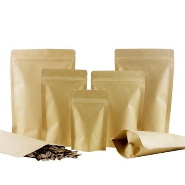 Make your products stand out with these brown Kraft poly stand-up pouches featuring reclose able zipper. They're fun, versatile, and lightweight, in addition to being easy to use -- just fill and zip! As an added measure of protection, they are lined with a heat-sealable poly material that ensures an air-tight seal. Just press above the zip closure using an ordinary household iron for a few seconds on medium heat or use a commercial handheld heat sealer. Tear notches are provided for easy opening if you use this option. These food-grade pouches can be used to safely package cookies, candy, granola and trail mix, popcorn, seeds, nuts, cereal, jerky, wedding and party favors, whole bean and ground coffee, and tea, as well as food and treats for dogs, cats, and other animals.