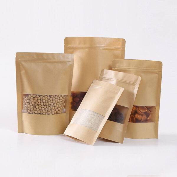Kraft Brown Paper Stand up Pouch- Zipper and Window
