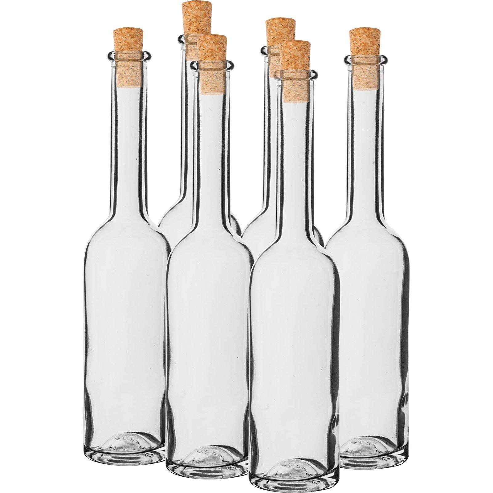 - Clear long neck glass bottles with corks for Oil, Marasca, Essential Oil and more. They are also suitable for interchangeable pendant art pieces, message in a bottle charms, keepsake charms, and much more.