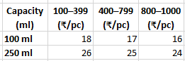 96pcs, 192pcs, 288pcs, 384pcs, 480pcs, 576pcs, 672pcs, 768pcs, 864pcs, 960pcs |