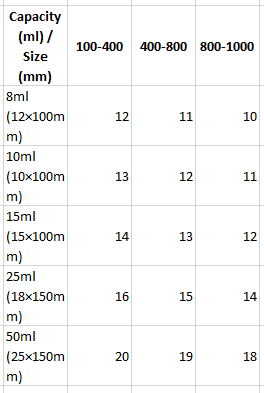 25ml, 8ml, 10ml, 15ml, 50ml |