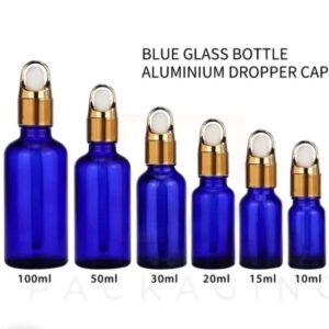 Product Name: Blue Glass Bottle + Basket Dropper (Black, White, Silver, Gold)