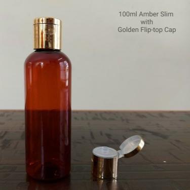 Cosmetic Round Pet Bottle with Flip Top Cap – Amber (100ml)