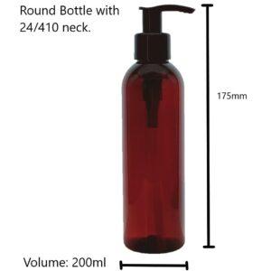 Cosmetic Round Pet Bottle with Lotion/ Dispenser Pump – Clear/ Amber (200ml)