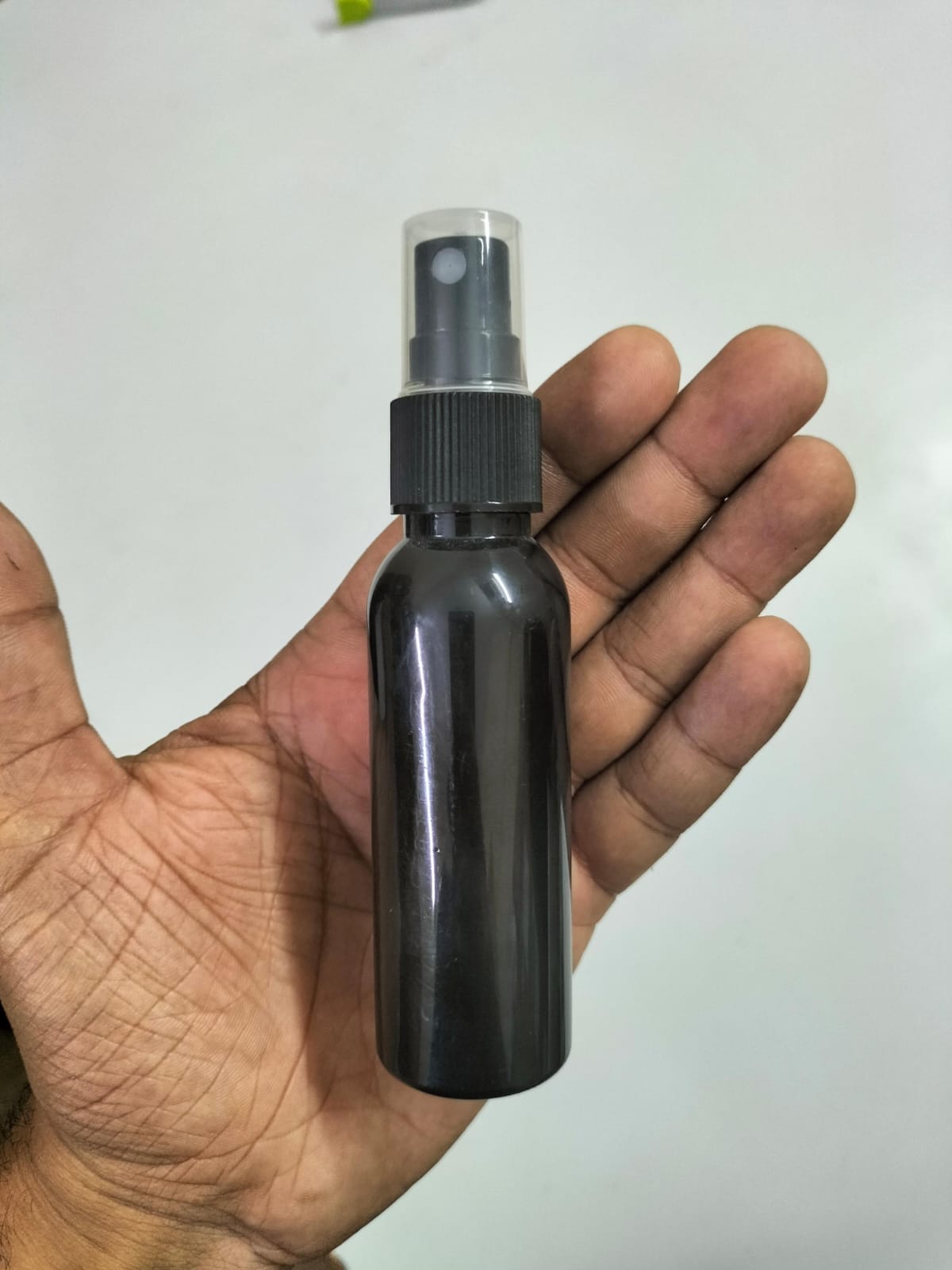 Cosmetic Round Pet Bottle with Spray Pump – Black (50ml)