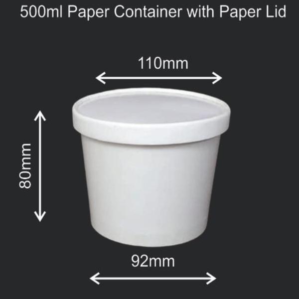 Product Name: Disposable Paper Food Container + Lid – 500ml (Round) White